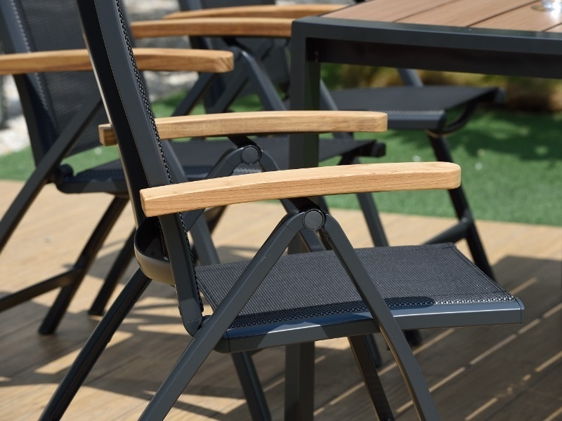 Dit is de Sina verstelbare tuinstoel. Deze tuinstoel heeft niet alleen een prachtig Italiaans design, maar zit ook nog eens super lekker. Het frame van de tuinstoel is gemaakt van aluminium en is antraciet van kleur. De zitting en de rugleuning zijn gemaakt van grijs-zwart textileen. De Sina tuinstoel is inklapbaar en daardoor gemakkelijk op te bergen. Zowel binnen als buiten is de tuinstoel te gebruiken.